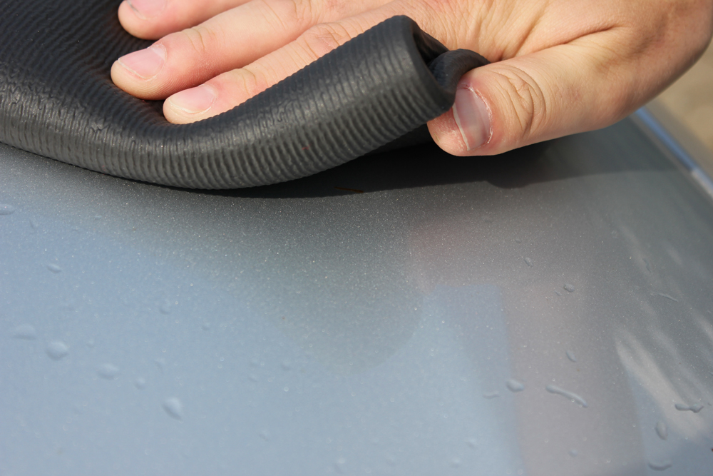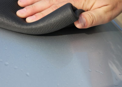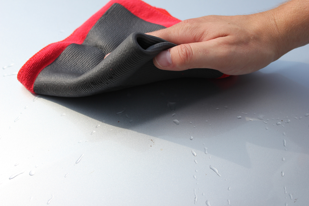 Microfiber cloth with polymer detailing clay Size: 30 x 30 cm Revolutionary alternative to the detailing clay. After use simply rinse with water and hang to dry. This removes dirt particles from paint easier and simpler than conventional detailing clay. Impregnate the towel, say, with ph-neutral car shampoo, fold four times and use it to wipe over the moistened car paint. Then simply wipe again with the towel's microfiber side.